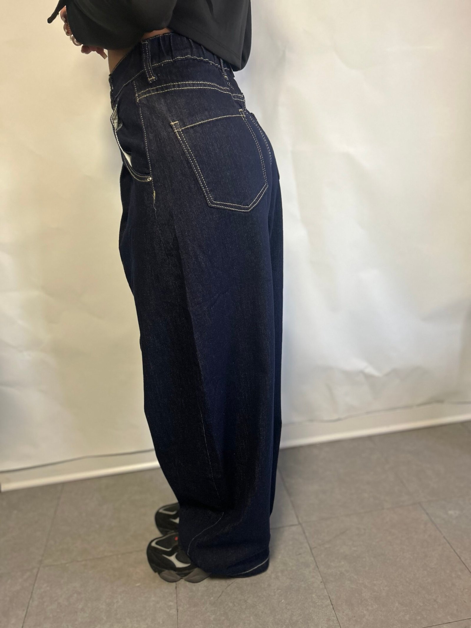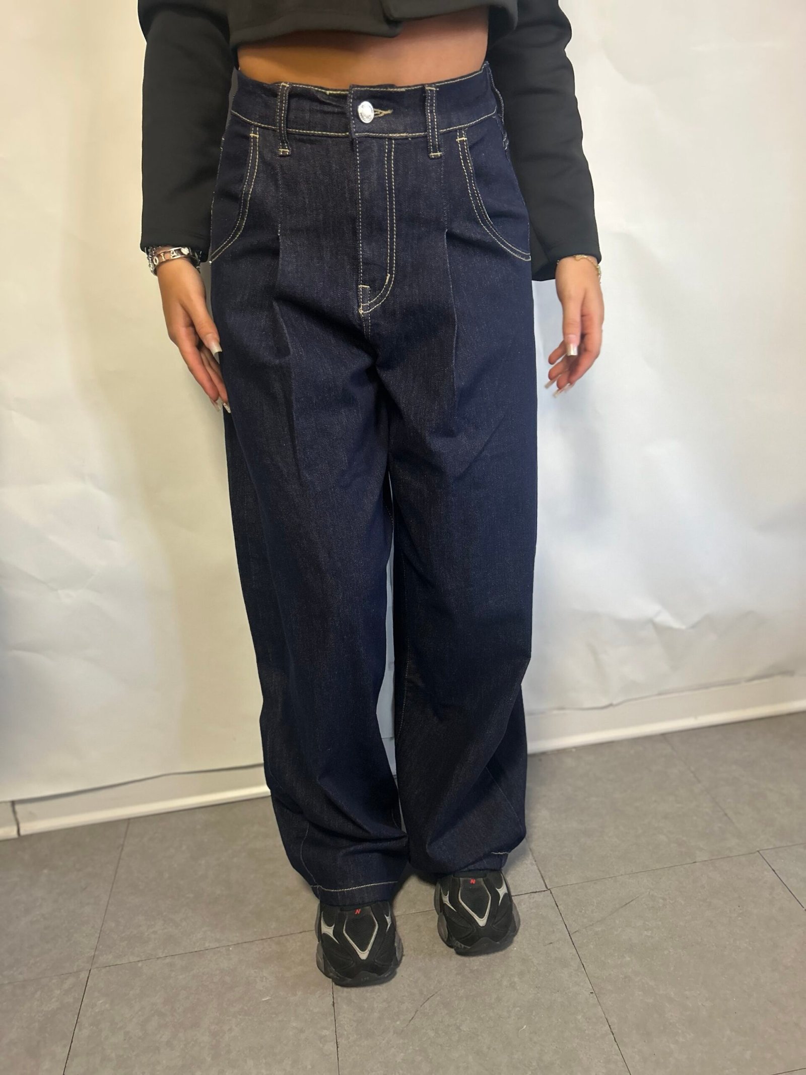 Jeans ballon elastico lavaggio zero con elastico e bottone in vita .
